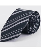 Купить Черный галстук напрокат с чередующимися белыми полосками для мужского костюма в интернет-магазине arenda-kostumov-omsk.ru с доставкой. Черный галстук напрокат с чередующимися белыми полосками для мужского костюма, артикул Ro-101 true: читать описание, характеристики, фото