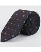 Купить Коричневый галстук в аренду с голубым цветочный и оранжевым квадратным узором для мужского костюма в интернет-магазине arenda-kostumov-omsk.ru с доставкой. Коричневый галстук в аренду с голубым цветочный и оранжевым квадратным узором для мужского костюма, артикул Ro-101 true: читать описание, характеристики, фото