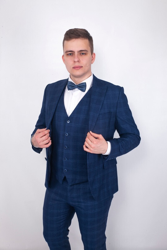 Темно-синий костюм в клетку: классика с изюминкой Темно-синий костюм в клетку представляет собой идеальное сочетание классической элегантности и динамичной современности. Этот стильный элемент мужского гардероба не только придает образу свежесть, но и ...