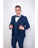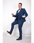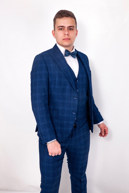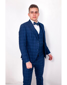Купить Мужской клетчатый костюм темно-синего цвета в клетку напрокат в интернет-магазине arenda-kostumov-omsk.ru с доставкой. Мужской клетчатый костюм темно-синего цвета в клетку напрокат, артикул Ro-101: читать описание, характеристики, фото